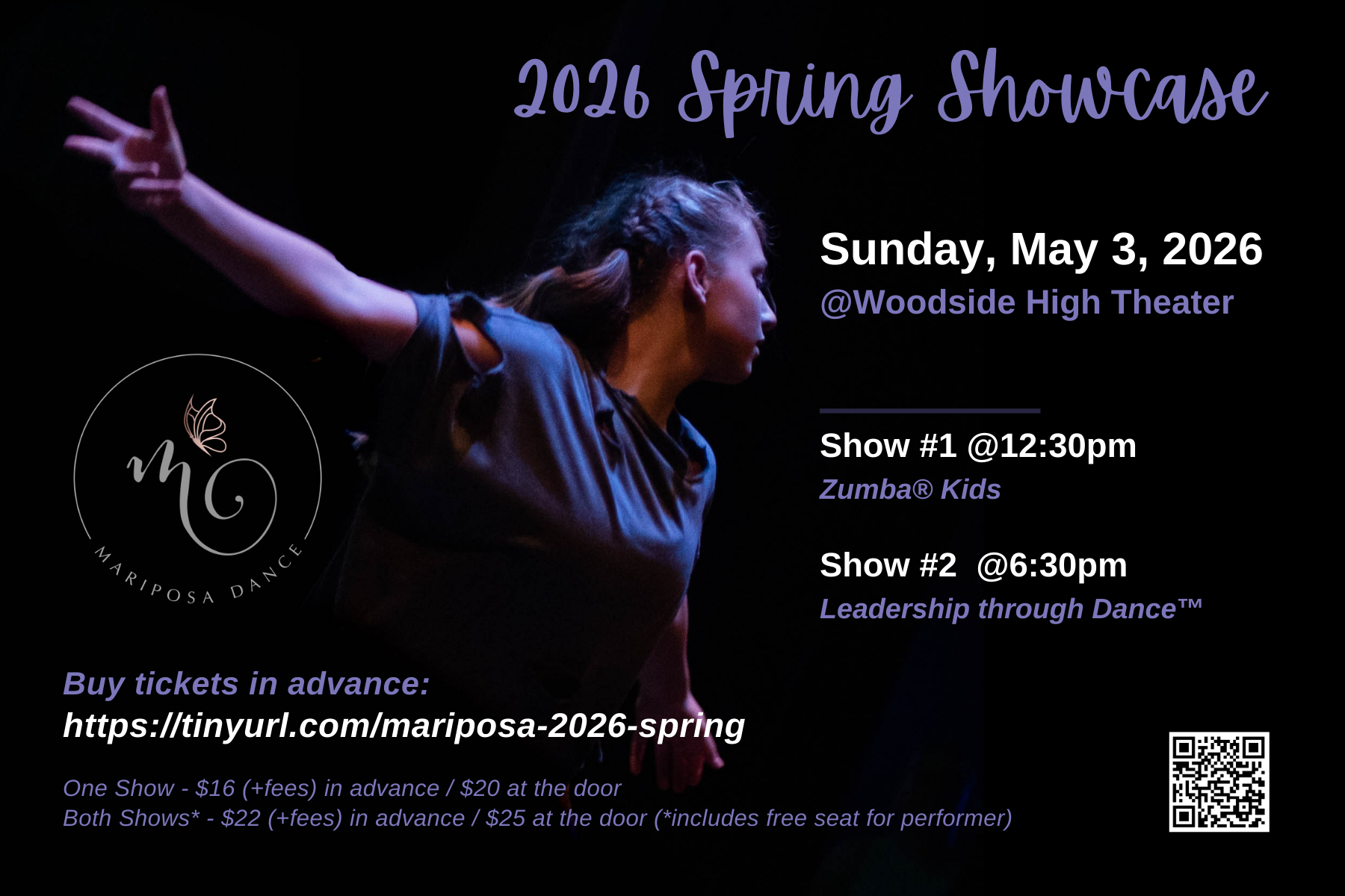 Mariposa Dance is excited to present our 2026 Spring Showcase, featuring two special performances in one day!
